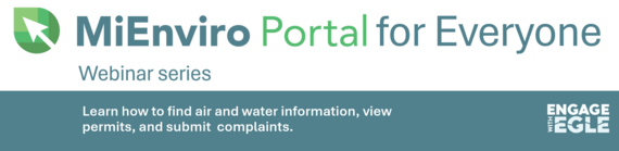 The Michigan Department of Environment, Great Lakes, and Energy's (EGLE) MiEnviro Portal is an online system for accessing and managing environmental information, permits, and regulatory data. It allows users to submit applications, track permits, and view environmental records in one convenient location. This free webinar series is designed to engage and inform Michigan residents on the environmental data and information at their fingertips. And no account is necessary!