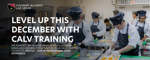 Culinary Academy of Las Vegas (CALV) supports Culinary and Bartenders Unions members in up-skilling and re-skilling for new opportunities. Your CALV certificate counts as one full year of professional work experience