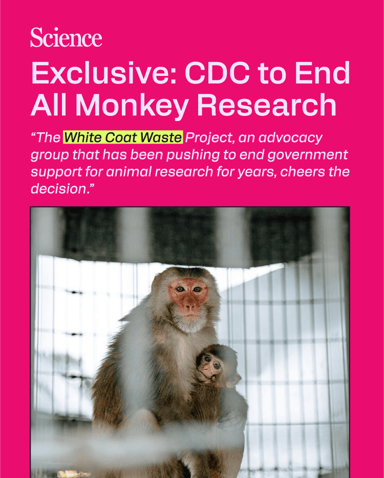 GOOD NEWS: your support just shut down the CDC’s primate labs. This follows our public campaigns, lobbying, and behind-the-scenes efforts with the Trump Administration.