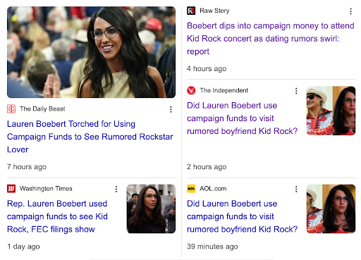 Recent filings with the Federal Election Commission show that she spent over $6,000 in campaign donor funds on traveling to and attending a Kid Rock concert. Many speculate that the two are dating.