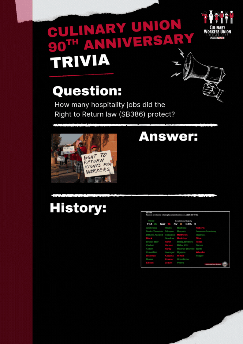Play our trivia each week on social media to learn more about the Culinary Union's history of fighting & winning a better life for hospitality workers.