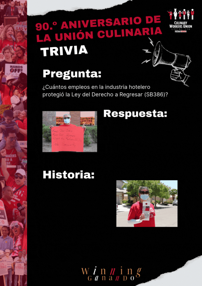 Juega a nuestra trivia cada semana en redes sociales para descubrir m谩s sobre la historia de la Uni贸n Culinaria que ha luchado por una vida mejor para los trabajadores de la hosteler铆a.