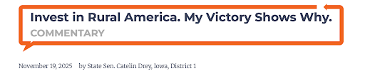 In her latest op-ed, Invest in Rural America. My Victory Shows Why, Sen. Drey shares that Sister District’s support was critical to making that moment possible: