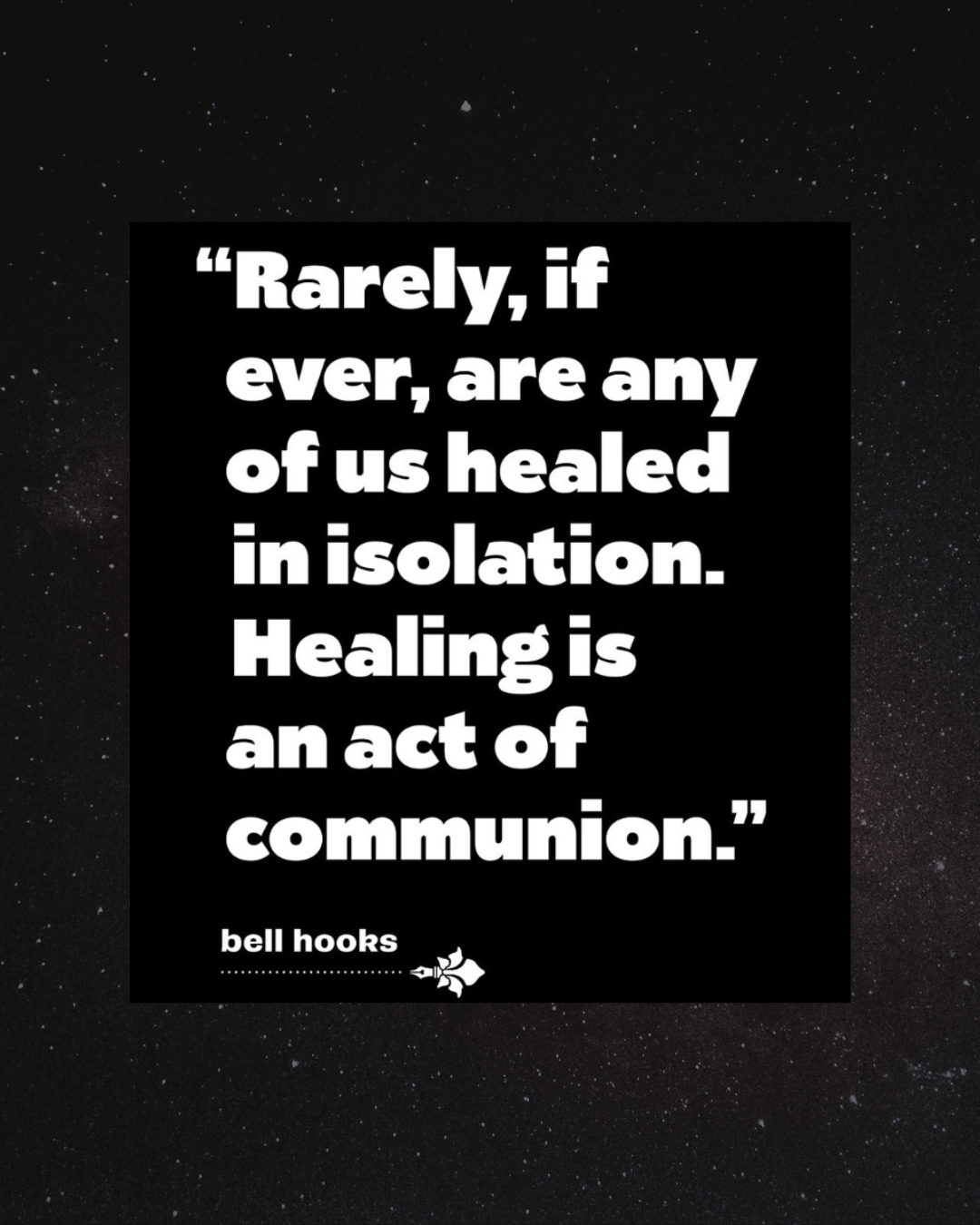 - We become who we are through others. Bell hooks reminds us that healing rarely happens in isolation. When transformation is witnessed in community, it becomes real.