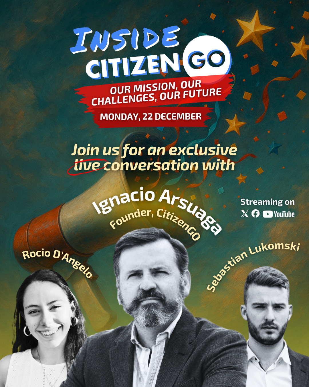 Next week, we’re hosting a laid-back, cozy live chat on X—think of it as a virtual fireside where we can all just hang out and reflect. I’ll be there along with Ignacio Arsuaga, our CitizenGO President, and the amazing Rocío D’Angelo, global campaigner at CitizenGO.