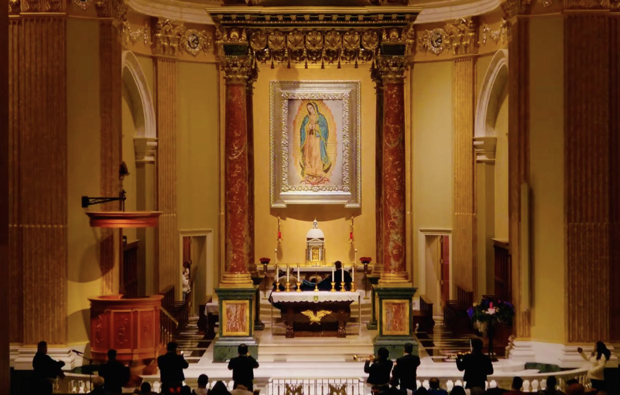 Traditional Mexican Marian Music beneath the mosaic of Our Lady of