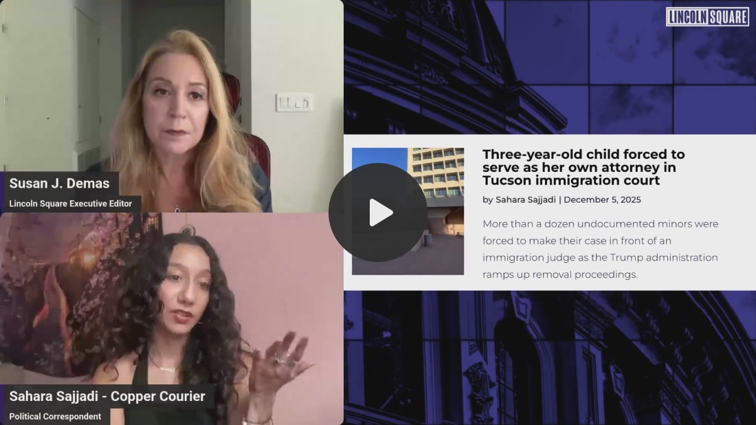 Get all access now and save 30% when you upgrade to become a paid subscriber today. Your subscription upgrade is a direct investment in defending democracy, helping Lincoln Square build a pro-democracy media machine to fight disinformation and inform voters with the facts.—We’ll also gift you $20 in Lincoln Bucks to use in our pro-democracy merchandise store for the holidays. Absurdity: Trump's Forcing Toddlers to Be their Own Lawyers | First Draft with Susan J. Demas and Courier Newsroom's Sahara SajjadiTrump promised he'd go after the "worst of the worst" with his immigration policy. Instead, three-year-olds cuddling teddy bears are being forced to represent themselves in court.