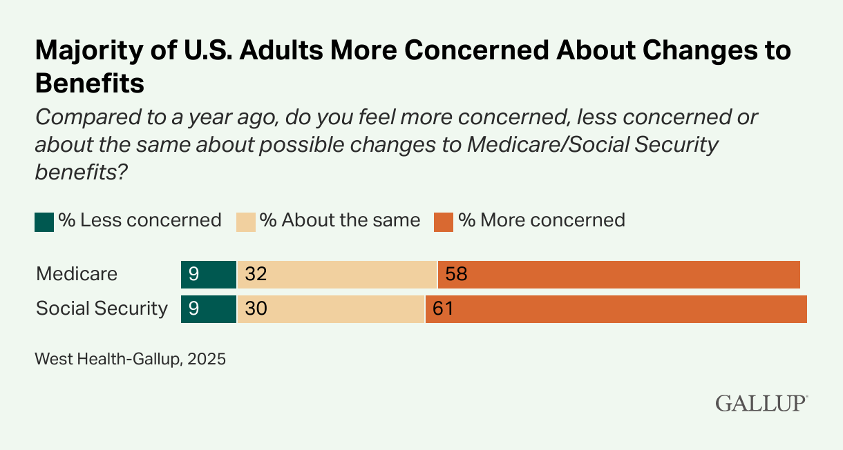 58 percent of Americans polled said they are more worried about Medicare now than they were a year ago, while 61 percent said they were more worried about Social Security now than compared to a year ago.