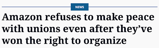 At the same time Bezos refuses to meet with workers, he has poured millions into political influence, donating to Donald Trump’s inauguration, and paying to stream it. Amazon’s refusal to bargain violates the National Labor Relations Act, which guarantees workers the right to organize and negotiate collectively.