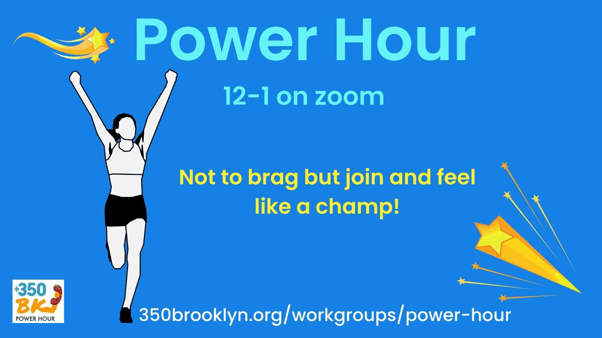 Power Hour is a weekly session of phone-calling power. Each week we convene on Zoom to call, email, and tweet at our elected leaders about a different climate or environmental justice issue prioritized by 350BK and our allies. Power Hour is designed to be high impact, but low pressure and low commitment. Join us every week as a way to routinize your climate activism, or come only on weeks when you’re free. Email us at [email protected].