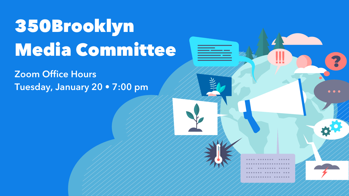 The Media Committee is 350Brooklyn’s in-house crew for communications and creative services. We manage the group’s website, newsletters and social media, and collaborate across workgroups to get the message out digitally and in print. Love a well-written, accessible, responsive email? Is your drive stacked with photos, video and design assets? Want to put those skills and that passion for climate action towards a great cause? Let’s meet! Join an informal information session on Tuesday, January 20 at 7:00 pm over Zoom. If you can’t make it then, we’d love to hear from you, too. Please email [email protected] to RSVP or learn more.