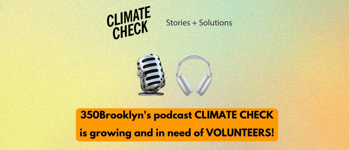 Climate Check: Stories and Solutions for Fighting Climate Change is 350Brooklyn’s own monthly podcast digging into the big questions and, in 2026, we’re stepping up our game! We’re looking for a few new volunteers to assist with marketing, research, and episode production. If you want to grow your skills in podcasting, while also fighting the climate crisis, email us at [email protected]!