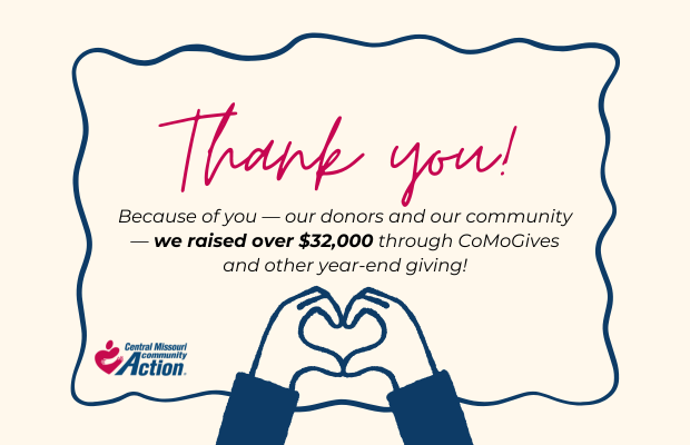 Throughout the month of December, we asked you to rally around us through our CoMoGives campaign, and we were blown away by your response. Between the online giving CoMoGives portal, our own site, and gifts mailed in, we raised a total of $32,798!