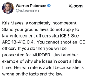 Arizona’s Stand Your Ground law does NOT apply to law enforcement officers - including ICE.