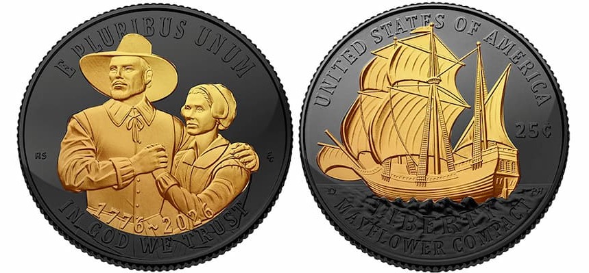 The U.S. Mint is releasing new collectible currency throughout the year to celebrate America's 250th Anniversary. They just released the New Mayflower Quarters and we have our hands on some unique variations, the 24kt Gold and Black Ruthenium limited edition variations. Check them out below!