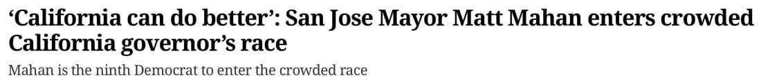 Thank you for being a free subscriber to So, Does It Matter? Please support what we do. And also get 100% of our content (right now you get about 60% of it!). Top Ten Winners & Losers In California Politics For The Week Ending 1/30/26 - Including The Biggest Loser Feature!Every week I'm closely following politics here in the Golden State. This is a weekly feature where we call out ten winners and/or losers. Actually, I tend to find more losers... LOL.Below is our Top Ten List of Winners and Losers for the Week. This feature is available to all of our subscribers, free and paid. Under the paywall, however, is our “Worst Week In California” special feature. It's me, in rare form, on video, going on why someone’s week sucked. Pithy? You bet! This is where we examine state and local politics (or national issues with a California angle), and highlight individuals (or groups) who have achieved notable successes or have had a particularly challenging week. I strive to call balls and strikes fairly and objectively, which sometimes makes it difficult to assemble this list. Top Winners & Losers This Week in California Politics⬇️ LOSER: DR. JENNIFER LUCERO — UCLA MEDICAL SCHOOL ADMISSIONS DIRECTOR California’s premier public medical school is now mired in a federal civil-rights lawsuit alleging that the institution uses race as a factor in admissions, despite both state law and U.S. Supreme Court precedent prohibiting such practices. The complaint specifically names the associate dean who oversees admissions, accusing her of reshaping the committee and process to prioritize racial factors, effectively lowering academic thresholds for some applicants and disadvantaging others on the basis of race. ⬆️ WINNER: SAN CLEMENTE COUNCILMAN STEVE KNOBLOCK While politicians in Sacramento and liberal-dominated city councils posture about the immigration enforcement issue, he actually did something about it. By helping lead the 3–1–1 council vote approving a high-powered federal surveillance camera to monitor the coastline for panga boat smuggling operations, he put public safety and national security ahead of hand-wringing and bureaucratic delay. San Clemente, at the southernmost end of Orange County, is now partnering directly with Border Patrol to address a real problem impacting coastal communities. That is what local leadership looks like when it is serious about protecting residents and supporting law enforcement. ⬇️ LOSER: TOM STEYER, BILLIONAIRE, CANDIDATE FOR CALIFORNIA GOVERNOR Affordability is dominating voter concerns, and he knows it. After years of bankrolling and championing aggressive climate policies that critics argue drove up electricity and energy costs, he is now attempting to distance himself from the financial fallout for households. Instead of acknowledging that regulatory choices and energy mandates carry costs, the campaign is trying to shift blame elsewhere. CalMatters reporting suggests the math behind that spin does not add up. I have written on Steyer’s hypocrisy before. ⬇️ LOSERS: CALIFORNIA SUPREME COURT JUSTICES ⬆️ WINNER: JOEL POLLAK, OPINION PAGE EDITOR, THE CALIFORNIA POST The launch of the California Post is off to a strong start, and much of that credit goes to the veteran editor now shaping its opinion page. Drawing on years of experience in hard-hitting political analysis and commentary working with the Breitbart News Network, the page has quickly established itself as a place for clear, unapologetic analysis that does not tiptoe around the state’s biggest policy failures. In just its first week, it is already adding a sharp new perspective to California’s media landscape. ⬇️ LOSER: ANAMARIE ÁVILA FARÍAS, DEMOCRATIC ASSEMBLYMEMBER I am calling her out because a bill she is carrying is breathtaking in scope and would prevent more than 20,000 federal civil service employees at U.S. Immigration and Customs Enforcement from working in a wide range of public-sector jobs in California, including law enforcement and education-related positions. I see this as political retribution, plain and simple — blacklisting people over their employer rather than any finding of individual wrongdoing. I wrote about it here. ⬇️ LOSER: SAN JOSÉ STATE UNIVERSITY San Jose State University (where I once served as a Member of the Student Senate) is a loser this week because the U.S. Department of Education’s Office for Civil Rights determined it violated Title IX by allowing a biological male to compete on the women’s volleyball team and by failing to adequately respond to complaints from female athletes. In my view, this is not a culture clash. It is a civil rights failure that denied women fair athletic opportunities and put state ideology ahead of federal law and the constitutional rights of female athletes. ⬆️ WINNER: MATT MAHAN, MAYOR OF SAN JOSE, GUBERNATORIAL CANDIDATE Jumping into an already crowded race for governor, the mayor managed something many candidates fail to do: he shaped the early narrative about himself. Coverage of his announcement across outlets spanning the ideological spectrum repeatedly used the word “moderate” to describe him. By California Democratic standards, that label has some surface-level plausibility. Still, a closer look at his policy positions suggests the description fits his temperament more than his ideology, which remains firmly aligned with his party’s mainstream. The dynamic evokes the old contrast between Dianne Feinstein and Barbara Boxer. Feinstein was often described as the “moderate” simply because she was less strident in tone, even though her voting record placed her comfortably on the left and was virtually identical to Boxer’s. That same distinction may apply here. Regardless of how the ideological debate plays out over time, the campaign rollout itself was disciplined, well executed, and politically effective — a strong opening move in a long, competitive race ahead. ⬇