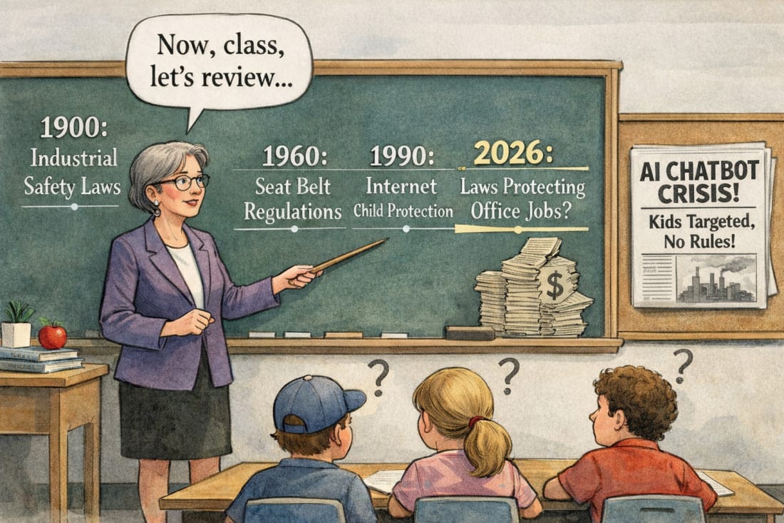 Real protection also means real accountability. Parents should have the clear right to take legal action if an AI system crosses those lines and a child is harmed, with the ability to recover medical costs, counseling expenses, financial losses, and emotional damages. Courts should be able to impose tougher penalties when companies knowingly ignore risks or fail to implement required safety measures. And the law should make clear that AI companies can’t hide behind the excuse that “it was just a chatbot talking.” If their design choices and lack of safeguards put kids in harm’s way, they can and should be held responsible.