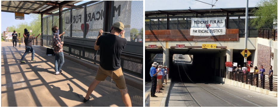 Our national Medicare for All Day of Action is off to the races! We have already seen pictures flood in across the country from both small group and solo actions. Check out this NNU member, a nurse from Tucson, AZ, who pulled together a banner drop over a busy overpass with 15 other people:
