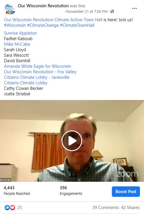 The town hall featured seven incredible speakers as well as a guest appearance by Amanda White Eagle of the Ho-Chunk Nation and candidate for State Assembly in the 92nd District. If you missed it, you can still catch the video on our Facebook page.