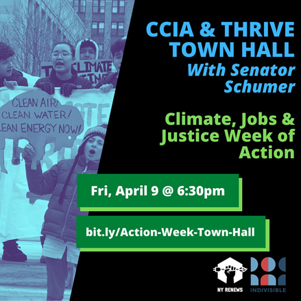 NY Renews and Indivisible will close out an incredible week of action with a town hall on "Climate, Jobs, and Justice" featuring New York Senator and Senate Majority Leader Chuck Schumer. It should be an illuminating night and one you don't want to miss. Register for the event here.