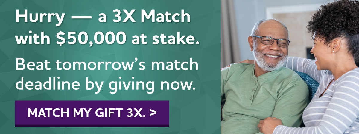 You have fewer than 48 hours left to take advantage of this opportunity for your gift to go 3X as far. Please don't miss out. Together, we can make an impactful difference this Alzheimer's & Brain Awareness Month. Thank you in advance for doing all you can to help.