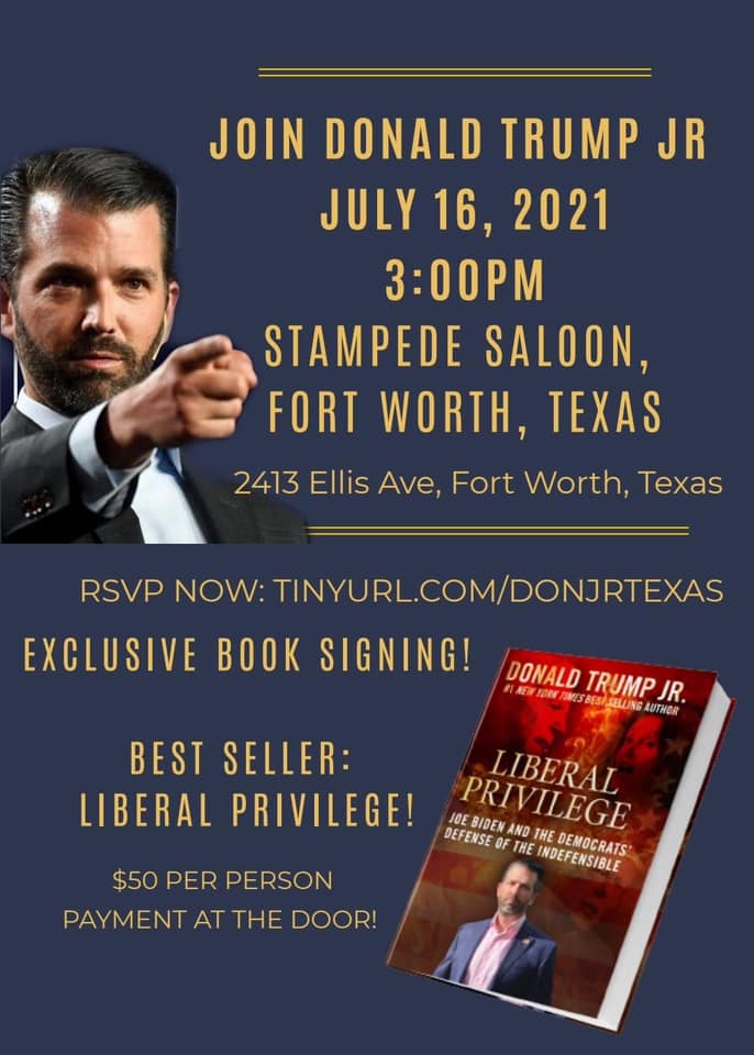Join Donald Trump Jr. for an exclusive book signing in Fort Worth!