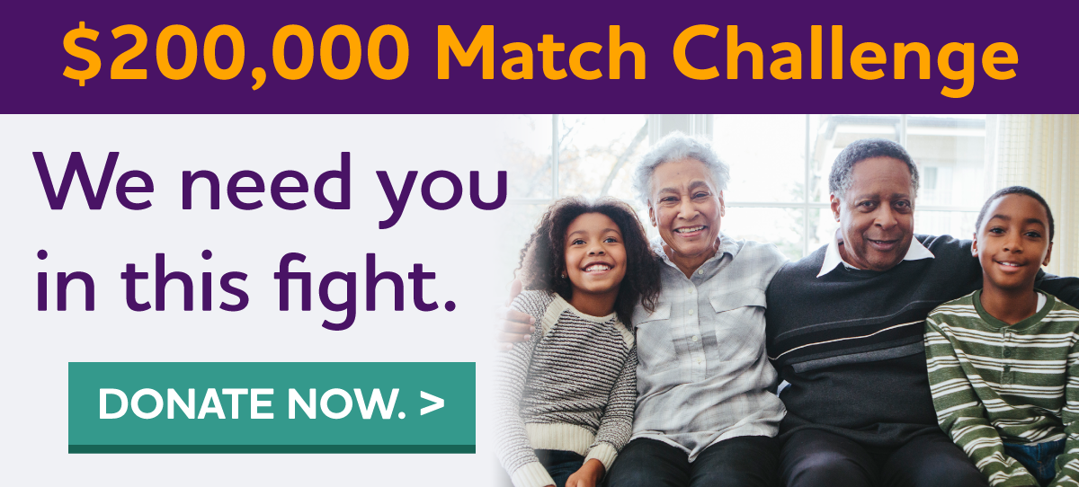 P.S. Alzheimer's is the nation's largest under-recognized public health crisis, killing more people than breast cancer and prostate cancer combined. Please make your impact on our fight to end Alzheimer's go 2X as far by giving today, during this special match challenge.