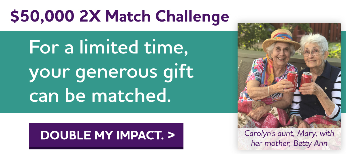 To honor her mother, Carolyn and her husband, David, have recently offered this $50,000 2X Match Challenge to provide care and support to those in need and advance vital research.