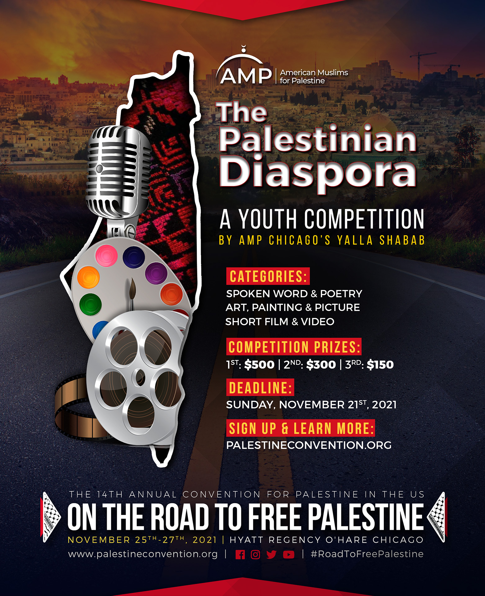 We have two major announcements for this year’s convention. 1. AMP invites high school students (from ages 13-18) to take part in this year's Youth Competition, run by AMP-Chicago's youth group "Yalla Shabab." Tell us about your experience as a teenager and being a part of the Palestinian Diaspora. This competition will have three categories: - Poetry/spoken word