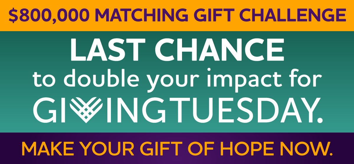 #GivingTuesday only comes once a year, and now it's almost over. But before it ends, you can still show your commitment during our $800,000 Matching Gift Challenge and DOUBLE your impact.