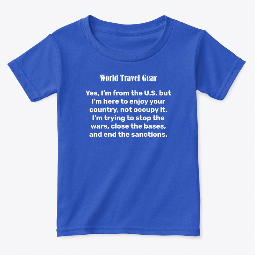 Because we appreciate everything you do for peace, we've created a special set of shirts in case you're planning to travel abroad this summer or in the future. Check them out here.