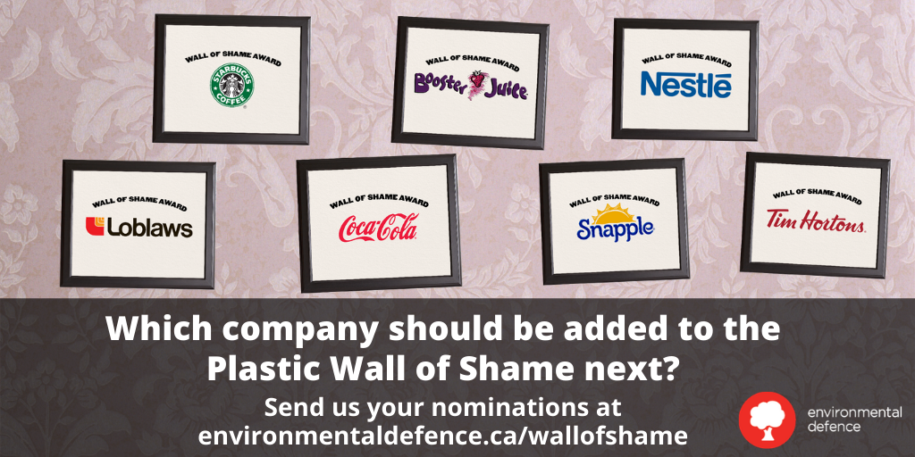 That’s why we’ve created the Plastic Wall of Shame, where companies like Coca-Cola, Tim Hortons, Loblaws and other big names are exposed for their shameful efforts (or lack of) to reduce plastic waste.