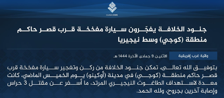 On December 29, 2022, however, ISWAP attempted to kill the president of Nigeria in a coordinated attack on a governmental palace in Kogi. Three guards were killed in the explosion. The president himself never was endangered during these operations. As reported by MilitantWire, “In Nigeria, two significant events occurred between Christmas and the New Year. The first took place on December 29th with an explosion in Kogi State. What is particularly newsworthy about the incident is that the blast occurred while President Muhammadu Buhari was making a visit to Kogi. Some reporting indicates that the timing of the blast came within minutes of the president’s itinerary. Members of Islamic State West Africa Province (ISWAP) claimed that President Buhari was the target of the blast.” |