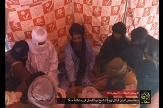 These attacks demonstrate the increased ability of ISWAP to attack targets outside their operational center in the northeastern parts of Nigeria. The attack on the Nigerian head of government is also significant since the country is heading towards presidential elections on February 25 and are an indication that ISWAP is developing into a force that seeks to destabilize the entire country rather than the regions in which they have a strong presence. JNIM By far the most interesting event during the month of January were the pledges of allegiance (bay’a) to Iyad Ag Ghali, the emir of JNIM, by Azawagh tribesmen in the area of Menaka. The Long War Journal reported: “According to Radio France Internationale (RFI), the clan notables belonged to the Daoussahak community near the northern Malian town of Inékar, close to the borders with Niger.” Pictures of the event were published on January 23; a video followed a day later. The importance of this message can hardly be underestimated as it was years ago Ag Ghali was seen in public. Militant Wire: “The appearances of Ag Ghaly are rare. They usually occur in the Kidal region, the stronghold of the separatist Tuaregs, mainly the National Movement for the Liberation of Azawad in northern Mali on the border with Algeria. Ag Ghaly’s last appearance was in October 2020 in the Kidal region.” |